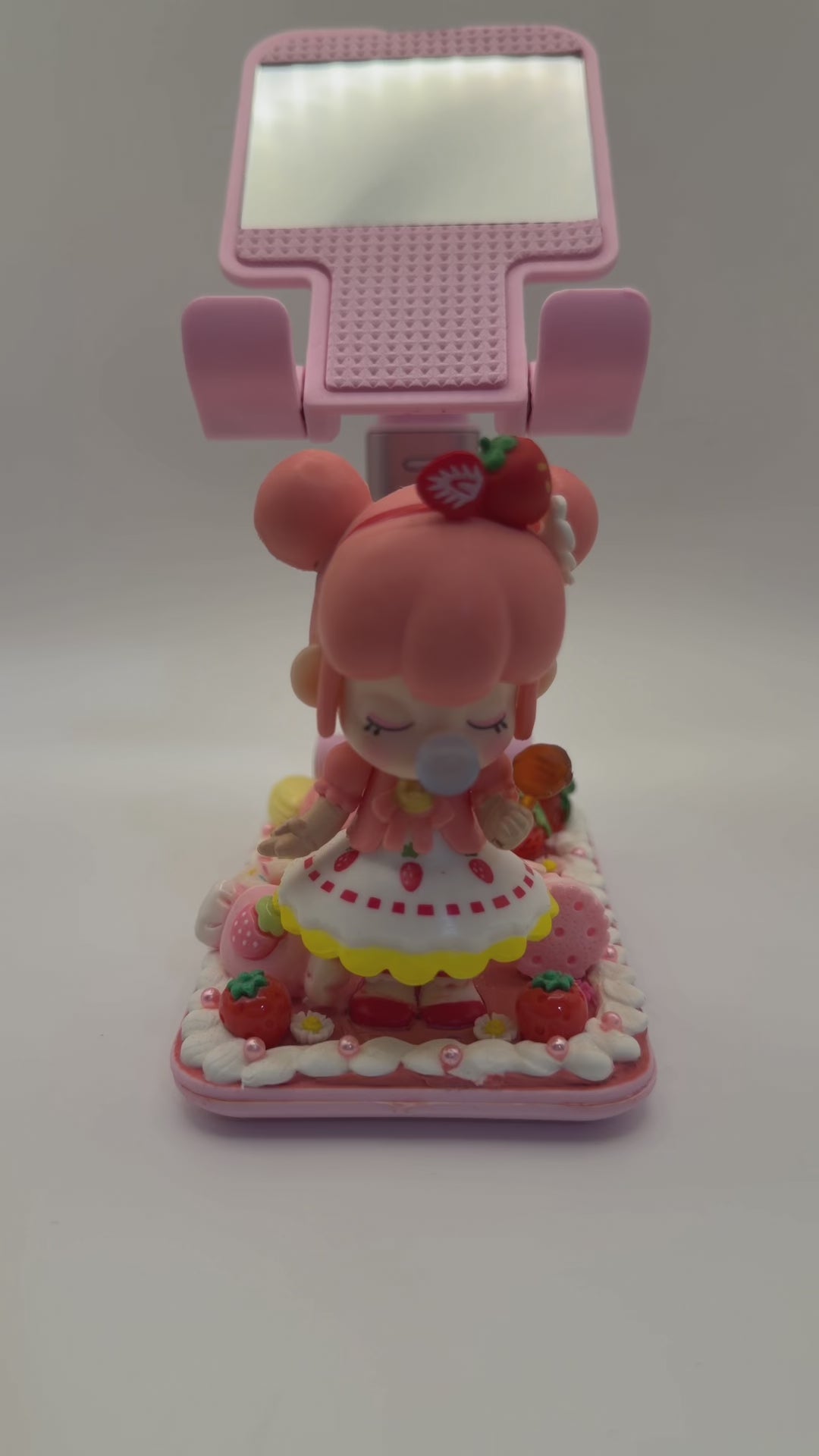 Each piece is carefully decorated by hand with resin cream, miniature strawberries, pearls, and floral accents, making every stand slightly unique.